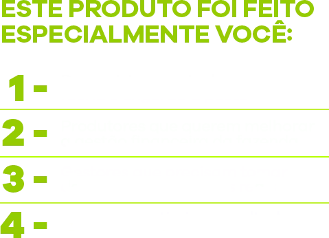 Feita para o pecuarista da recria e engorda que quer ter os números da fazenda na palma da mão.