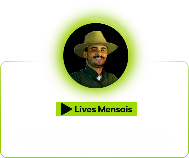 Tenha o controle completo da sua fazenda, registre custos, visualize resultados e simule cenários para maximizar sua rentabilidade com uma planilha simples e prática — sem complicação.